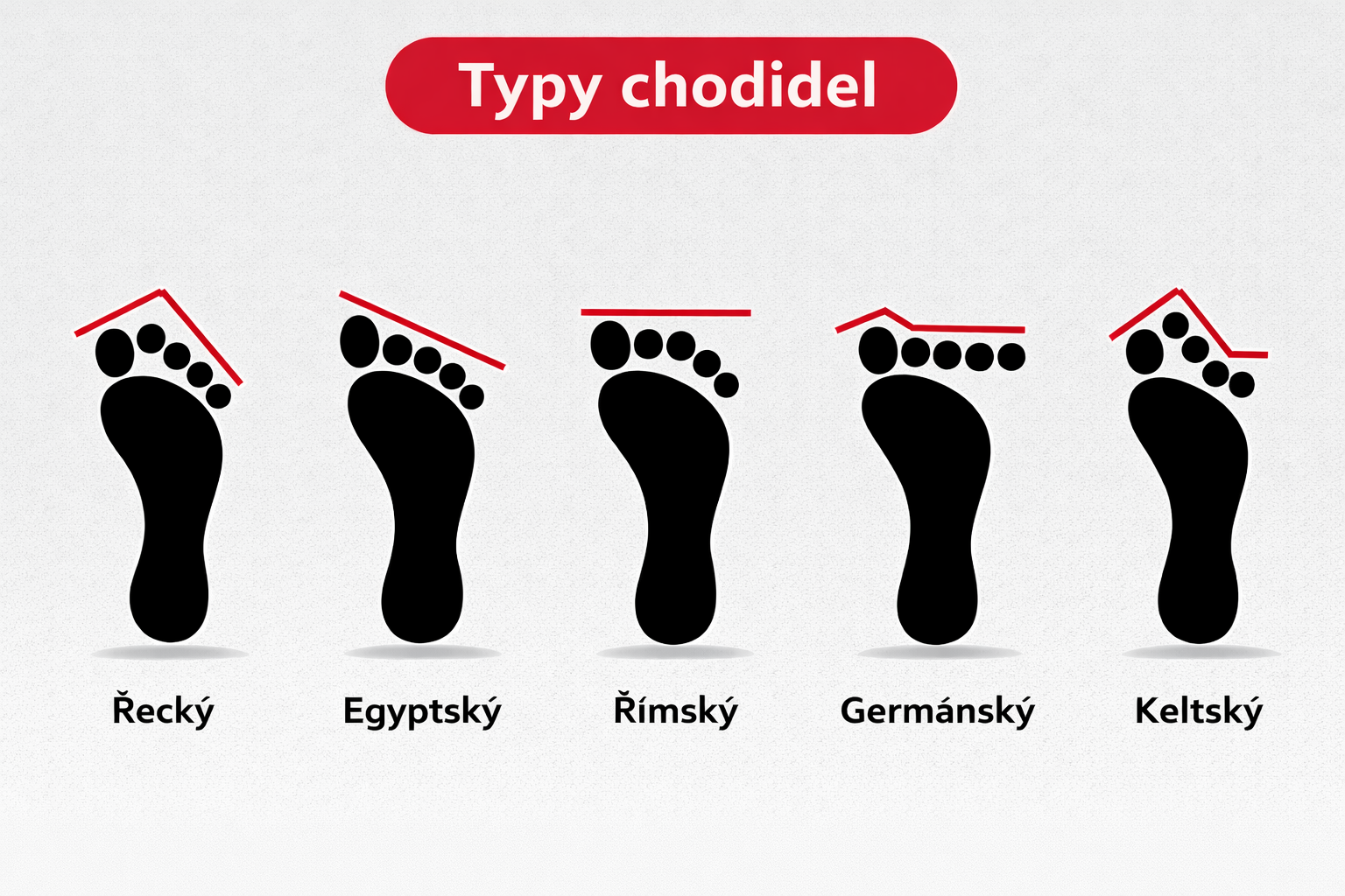 Pro přesnější určení tvaru chodidla nebo případných problémů je však vhodné navštívit specializovanou prodejnu obuvi nebo podologa.