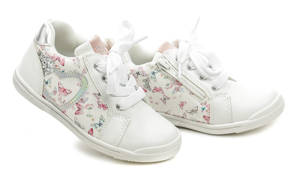 Dětská celoroční rekreační obuv na šněrování a zip. Obuv je vyrobená z kombinace textilního a syntetického materiálu.