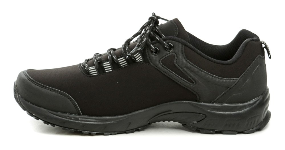 Celoroční vycházková a outdoorová obuv na šněrování, vyrobená ze softshellového textilního materiálu.