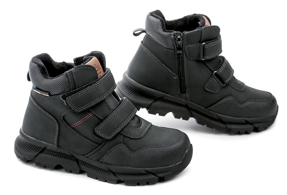 Dětská zimní vycházková obuv se zapínáním na běžný zip i suchý zip.