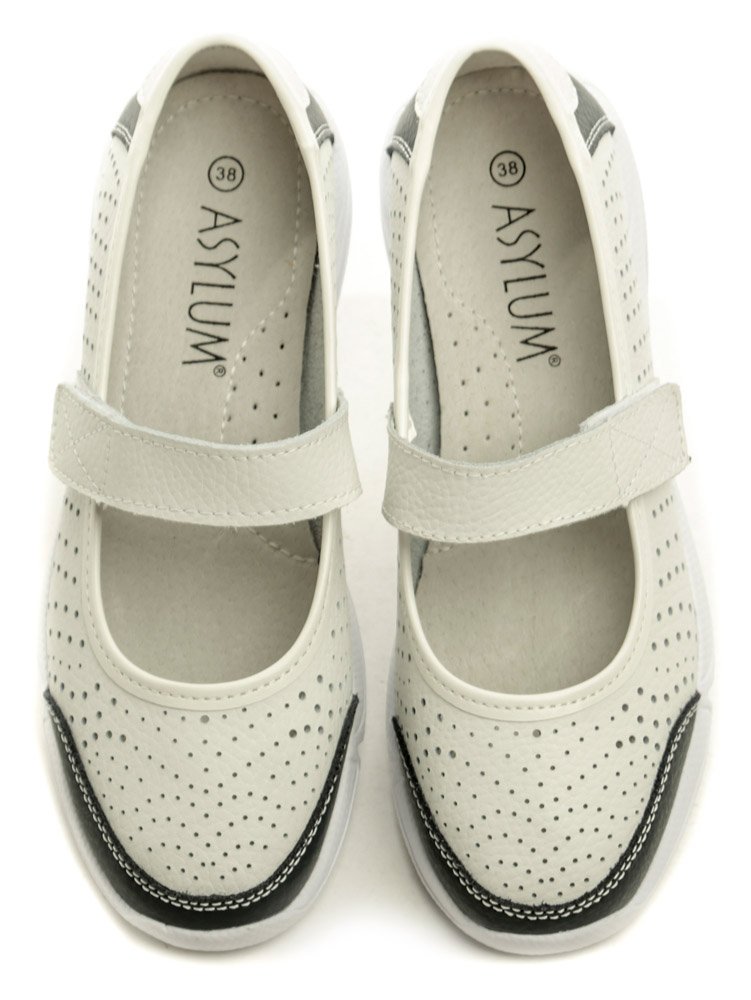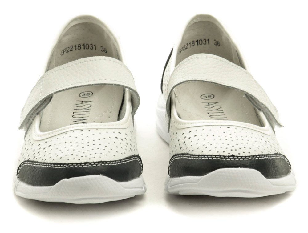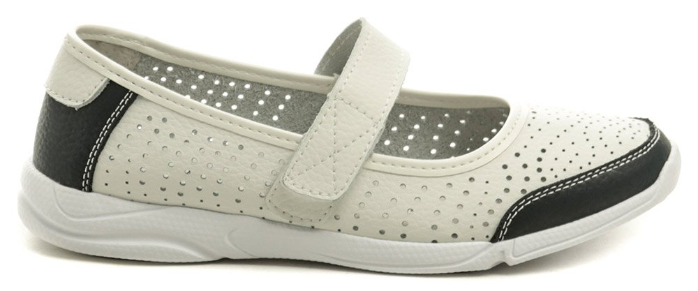 Dámská vycházková letní obuv typu baleríny se zapínáním na pásek přes nárt pomocí suchého zipu.