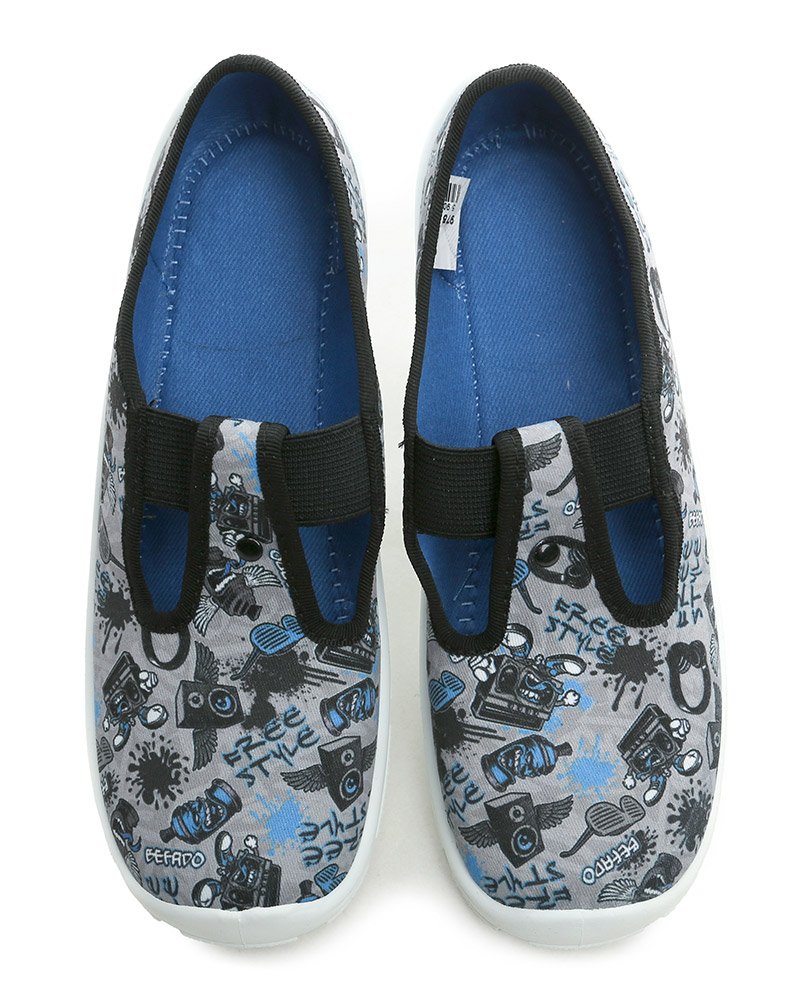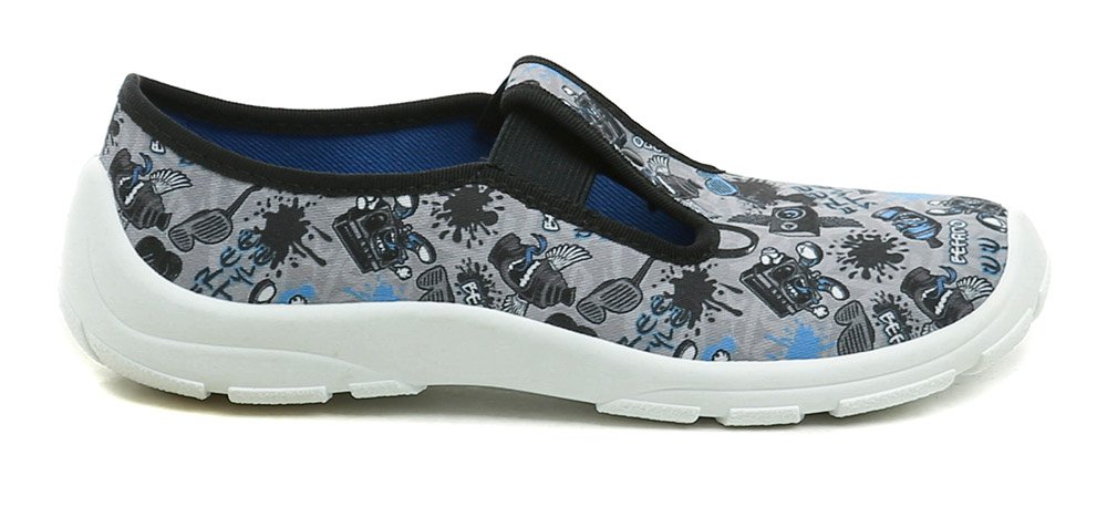 Dětská celoroční rekreační a volnočasová obuv, vyrobená z textilního materiálu.