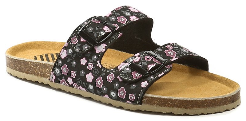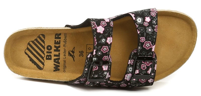 Pantofle značky Bio Walker se dvěma pásky nastavitelnými pomocí spony.