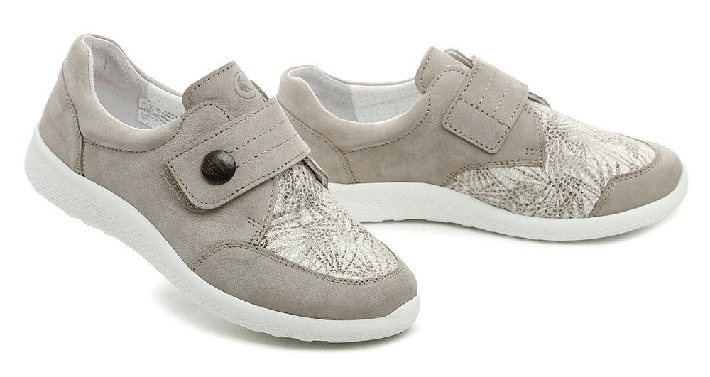 Dámská celoroční vycházková zdravotní obuv se zapínáním na suchý zip páskem přes nárt.