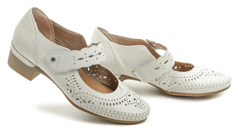 Dámská letní vycházková obuv na stabilním podpatku se zapínáním na pásek přes nárt se suchým zipem, vyrobená z pravé přírodní kůže.