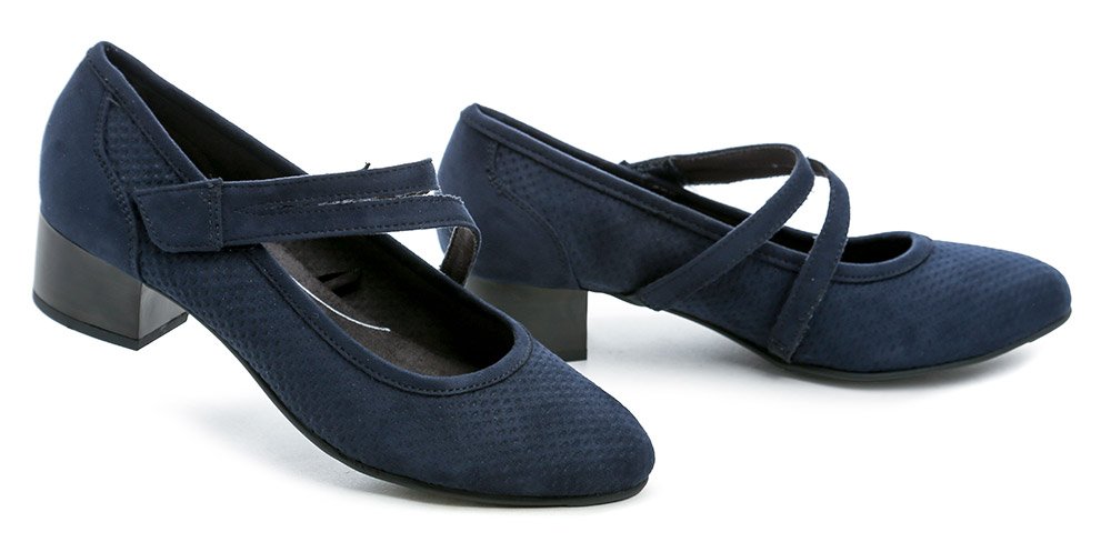 Dámská letní vycházková obuv na stabilním podpatku se zapínáním na pásek přes nárt se suchým zipem.