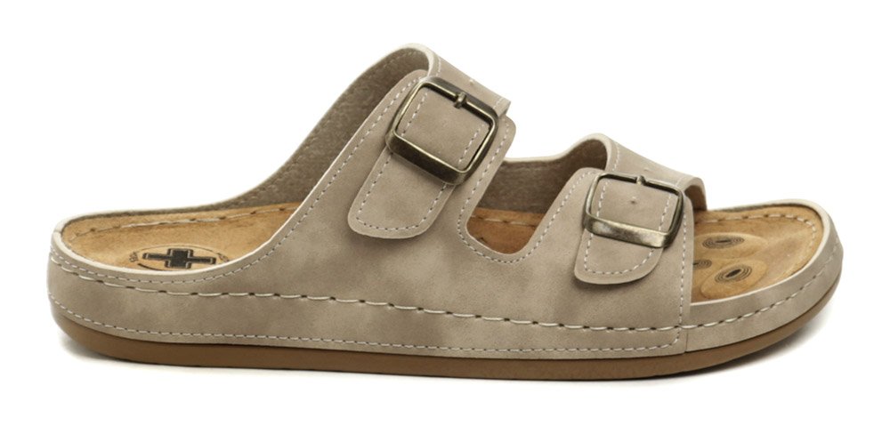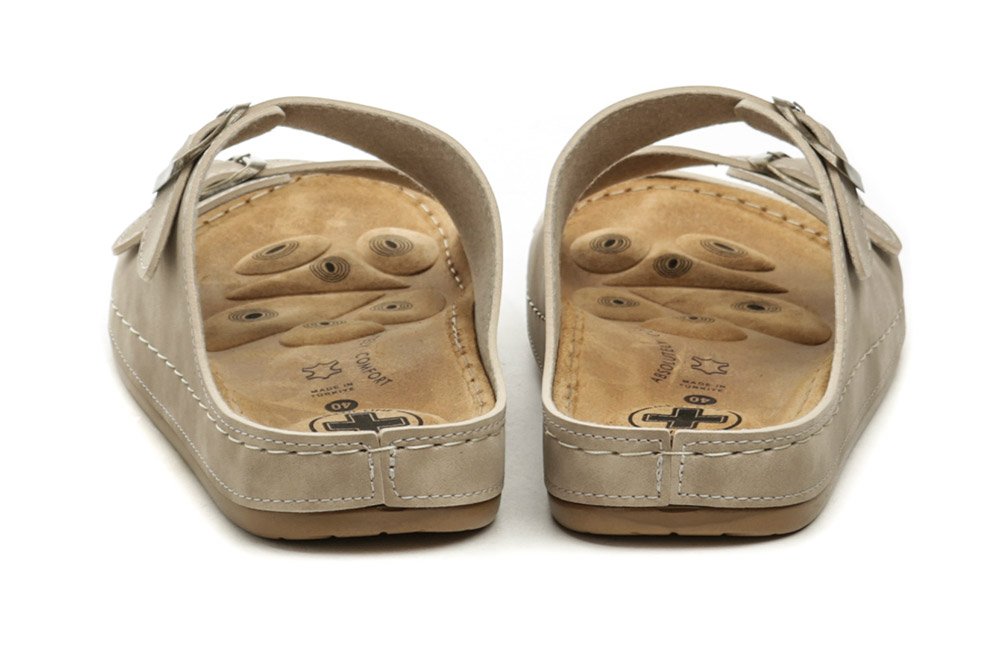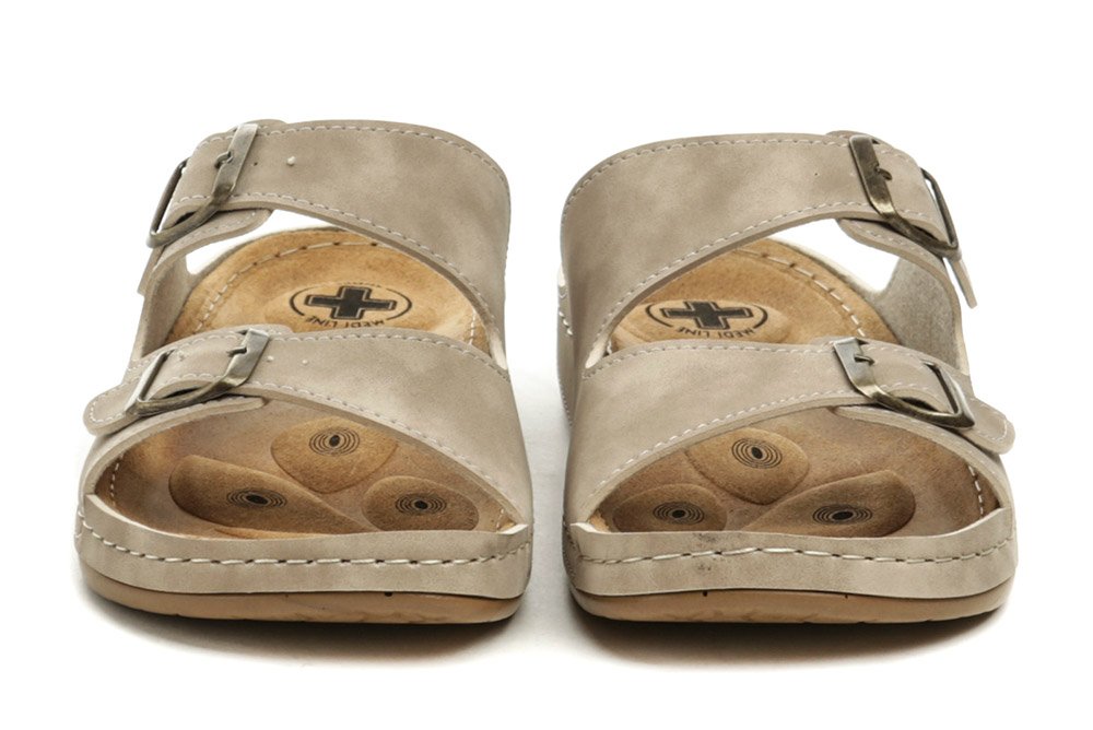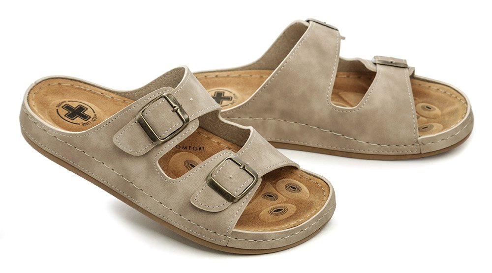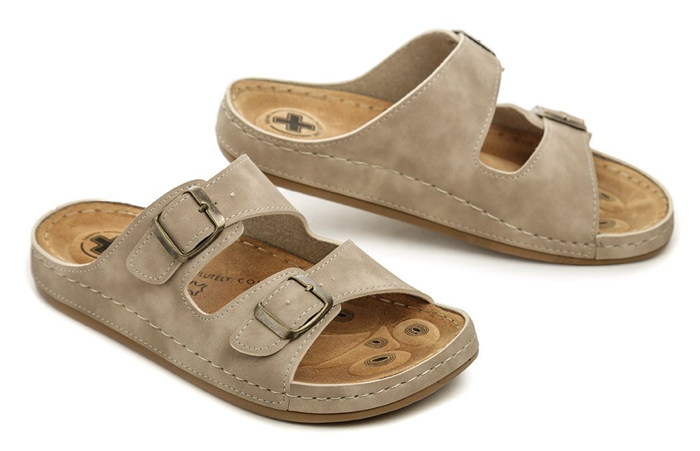 Celoroční rekreační a přezůvková zdravotní nazouvací obuv s nastavitelným páskem.