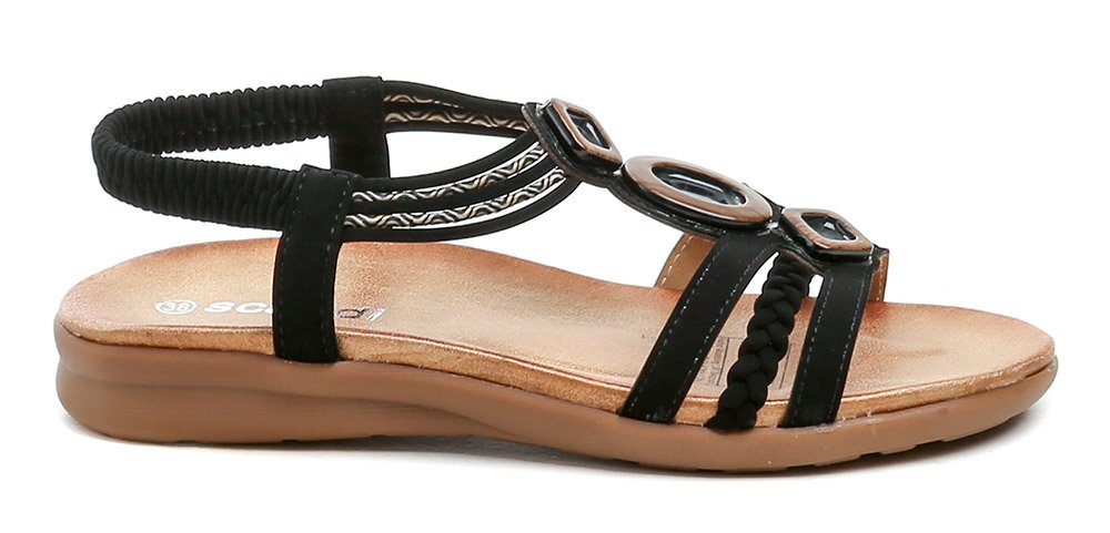 Dámská letní vycházková obuv typu sandály s nazouávním pružným patním páskem.