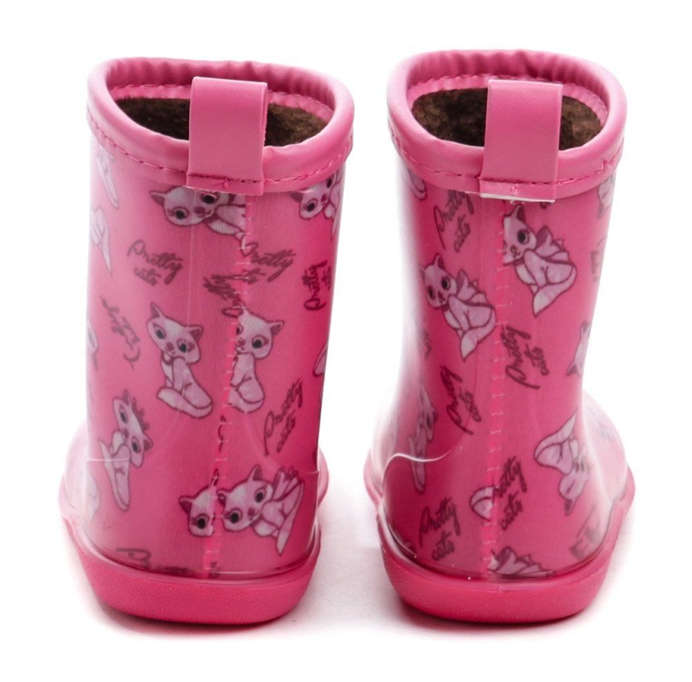 Obuv je vyrobena z průhledného gumového materiálu. Vnitřní část obuvi je vybavena textilní podšívkou, která tvoří barvu a motiv holínky. Uvnitř pevná podšívka z chlupaté textílie.