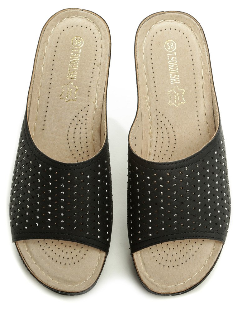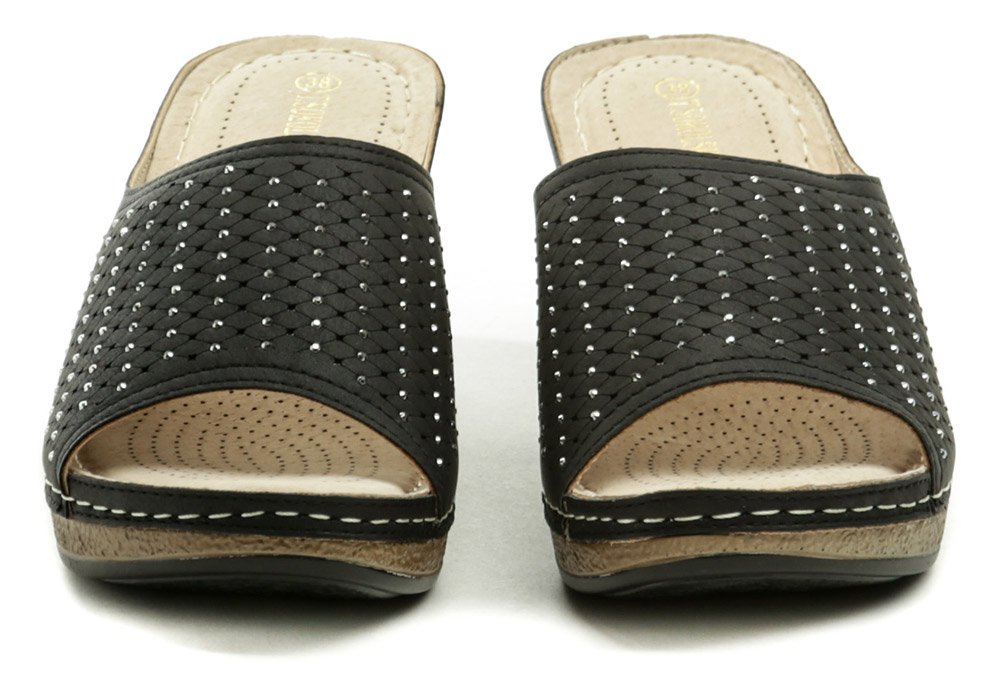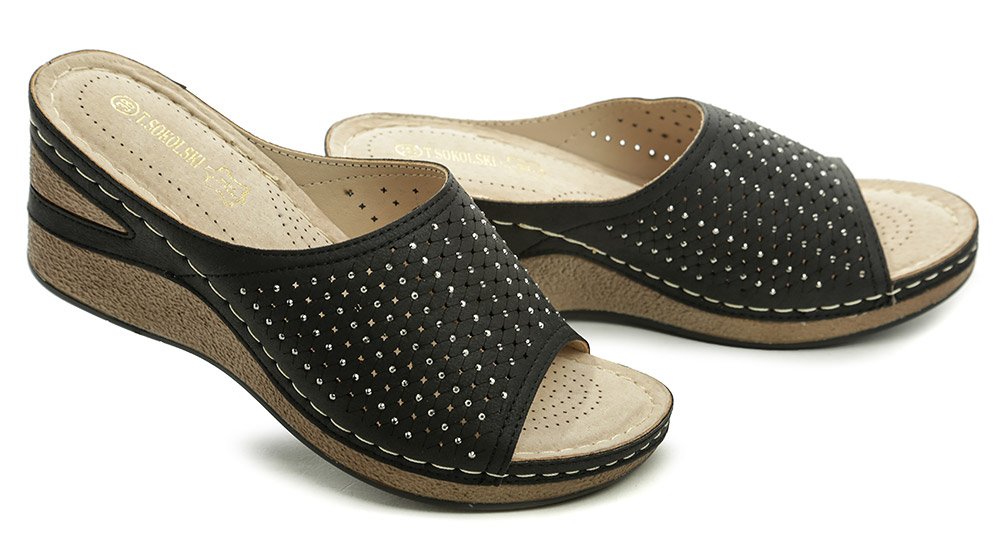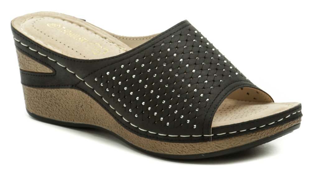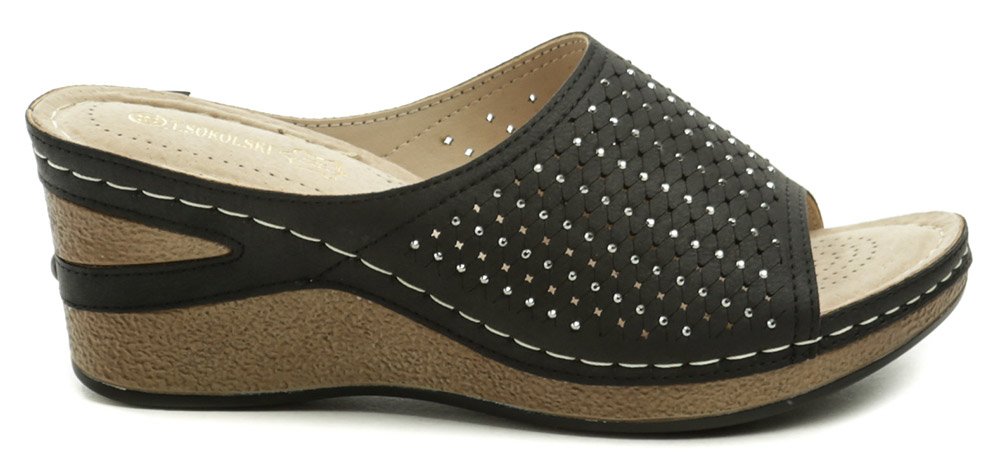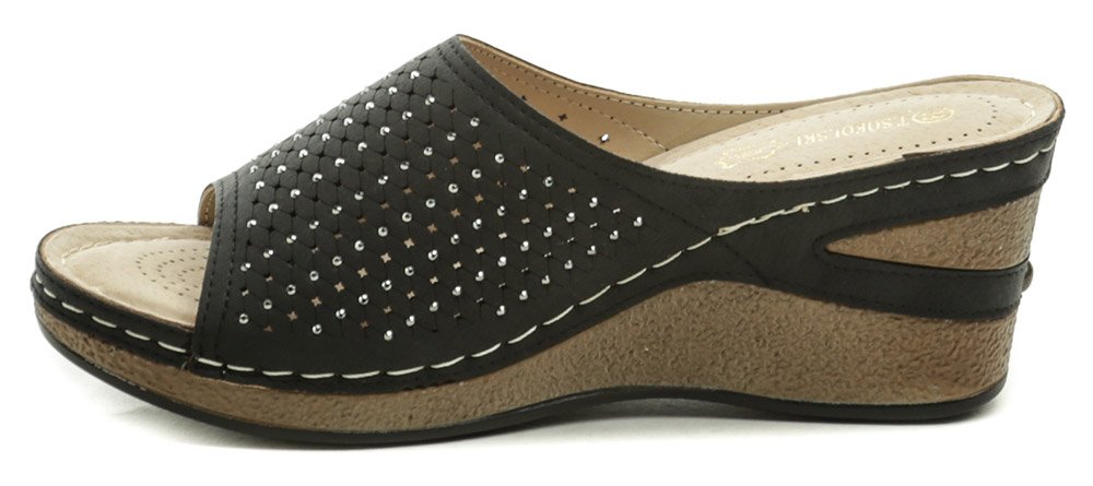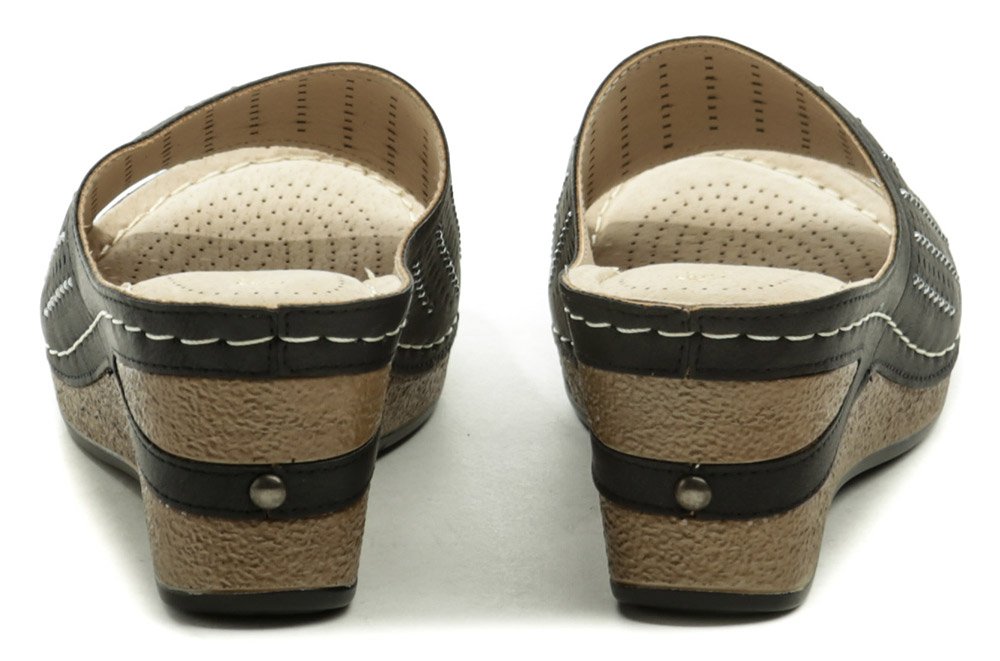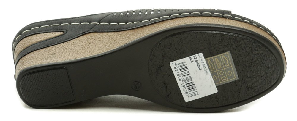 Dámská letní vycházková nazouvací obuv na klínku s volnou špicí a patou.