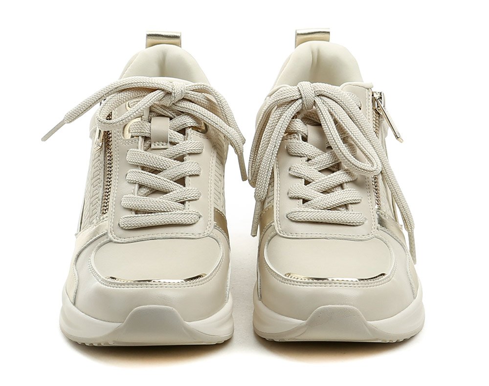 Dámská celoroční vycházková obuv na šněrování i zip. Obuv je vyrobená ze syntetického materiálu, vnitřní část je vyrobena z kombinace textilního a syntetického materiálu.