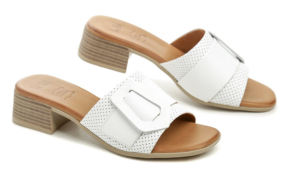 Dámská letní vycházková nazouvací obuv s volnou špicí na nízkém podpatku