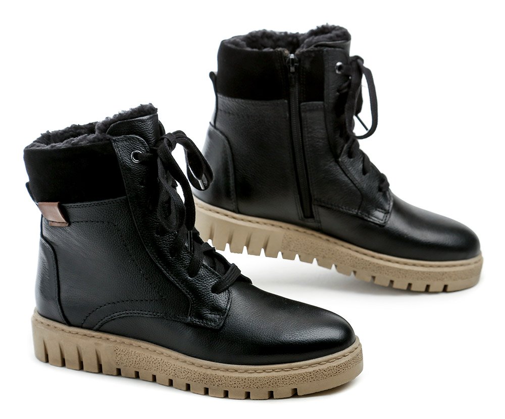 Dámská zimní vycházková obuv na šněrování a se zapínáním na zip.