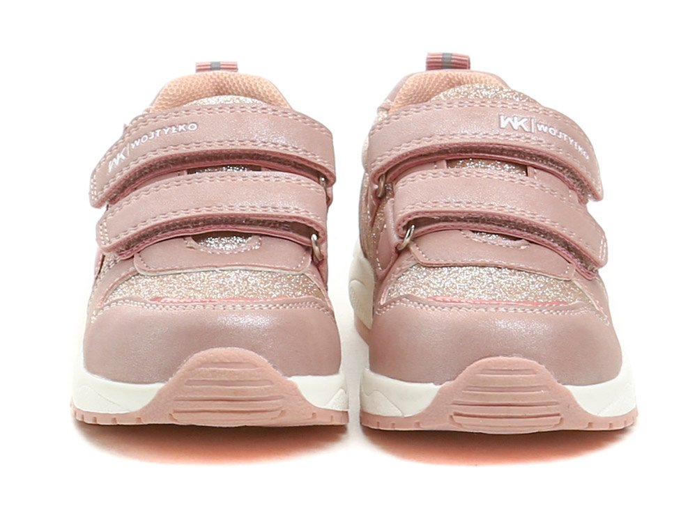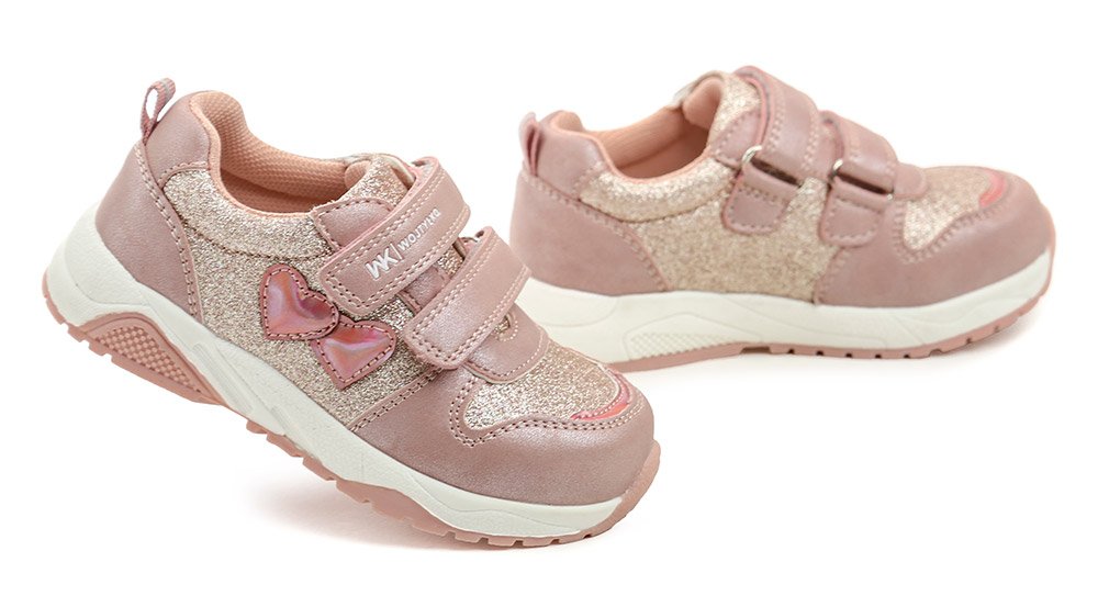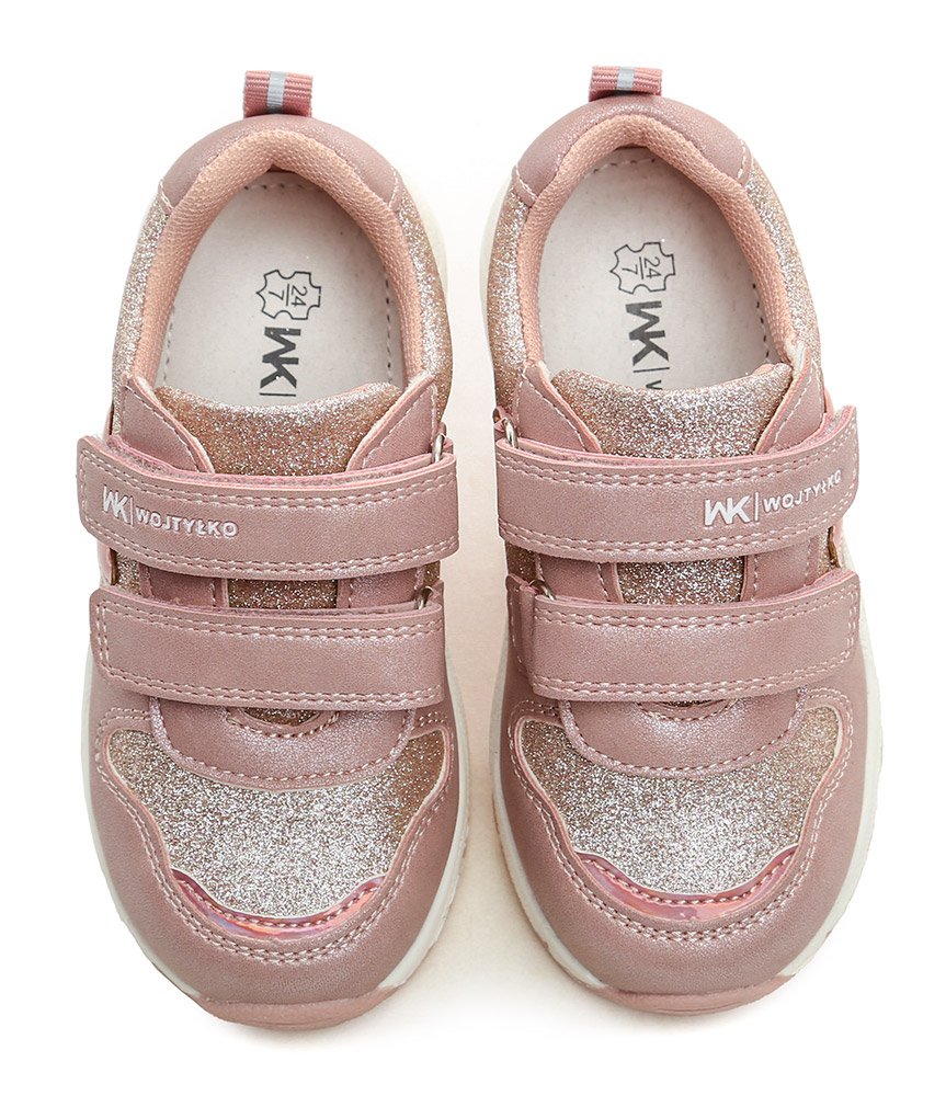Dětská celoroční vycházková obuv se zapínáním na dva pásky se suchým zipem.