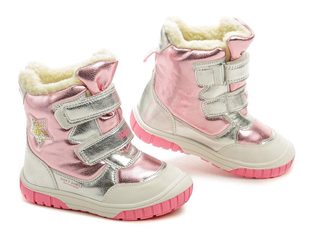 Dětská zimní vycházková kotníčková obuv se zalepováním na suchý zip.