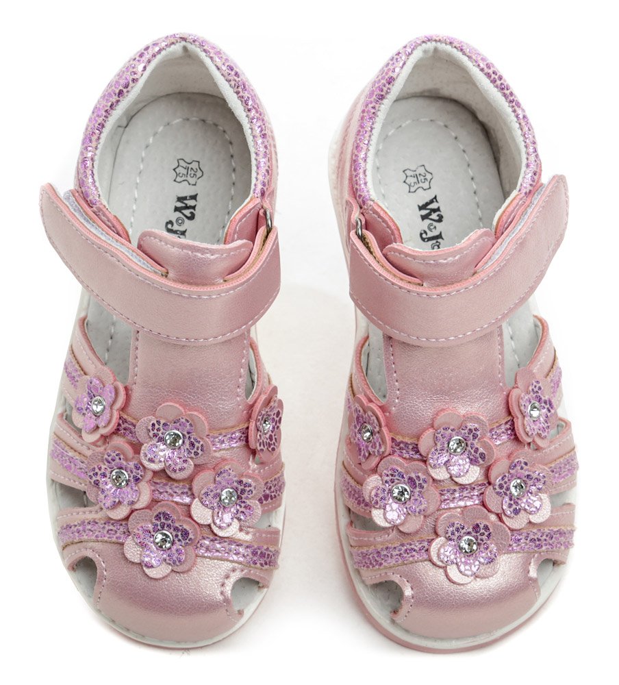 Letní vycházková obuv se zapínáním na pásek se suchým zipem.