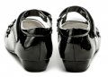 Dívčí celoroční společenská obuv se zapínáním na pásek se suchým zipem, vyrobená z lakované syntetické kůže v kombinaci s přírodní kůží a textilem uvnitř.